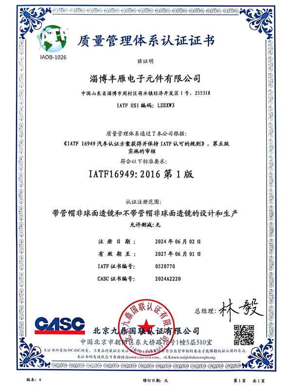 淄博豐雁電子元件有限公司,是一家集研發、生產、銷售為一體的透鏡管帽、晶體諧振器、晶體濾波器的高新技術企業。成立于1992年,坐落于山東省淄博市周村區,注冊資金1000萬元,擁有職工150余人,公司占地35000平方米,其中擁有5000平方的超凈化廠房,并配備了千級凈化工作臺,確保環境的凈化度。公司下設光電事業部,濾波器事業部,晶體事業部等多個事業部。專注為光通訊、激光器領域以及各種電子應用領域進行電子元件配套。公司于1999年通過了ISO9000質量體系認證,公司提供的所有產品符合歐盟的R0HS和REACH標準。公司擁有持續創新的研發團隊,有常年的外聘技術專家長期指導,并且與國內多所大學和光電研究所保持長期合作關系,確保了產品和技術的先進性,能持續為客戶提供高質量的產品和更好的全方位服務。